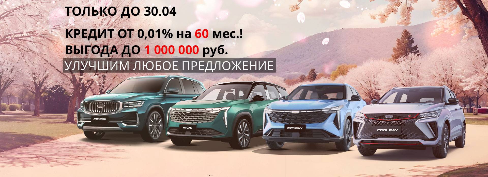 *Выгода в размере 1 200 000 рублей указана для автомобилей «Geely Monjaro" и состоит из специальной выгоды в размере 150 000 руб., выгоды при покупке в кредит в размере 600 000 рублей и выгоды по программе Лояльный или Специальный Трейд-ин, руб. в размере 600 000 рублей. Программа действует с 01.01.2026 по 30.04.2026 г.